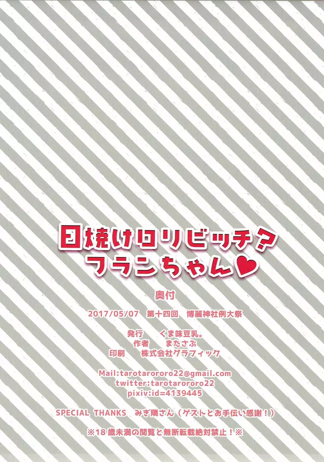 (Reitaisai 14) [Kuma Aji Tounyuu. (Matasabu)] Hiyake Loli Bitch? Flan-chan (Touhou Project) (例大祭14) [くま味豆乳。 (またさぶ)] 日焼けロリビッチ?フランちゃん♥ (東方Project)