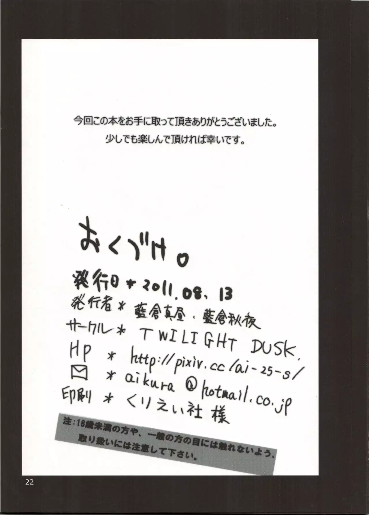 (Puniket 22) [TWILIGHT DUSK (Aikura Mahiru, Aikura Shuuya)] Yome vs Yome (DARKER THAN BLACK)