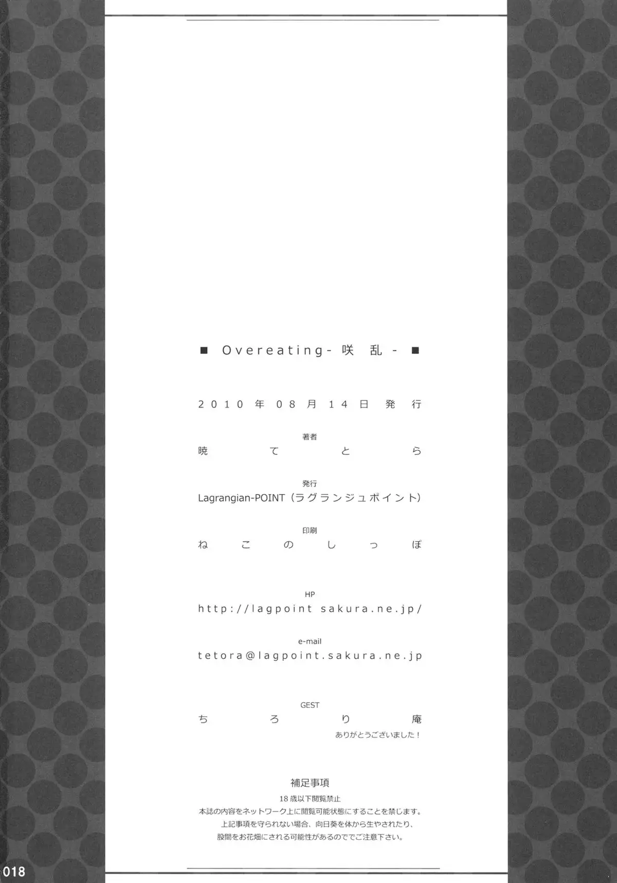 (C78) [Lagrangian-POINT (Akatsuki Tetora)] Overeating -Shouran- (Touhou Project) (C78) [Lagrangian-POINT (暁てとら)] Overeating -咲乱- (東方Project)