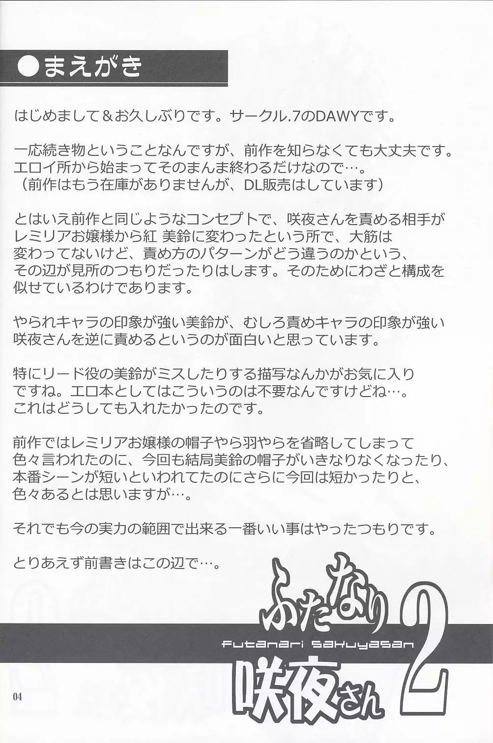 (C76) [.7 (DAWY)] Futanari Sakuya-san 2 (Touhou Project) (C76) [.7 (DAWY)] ふたなり咲夜さん2 (東方Project)