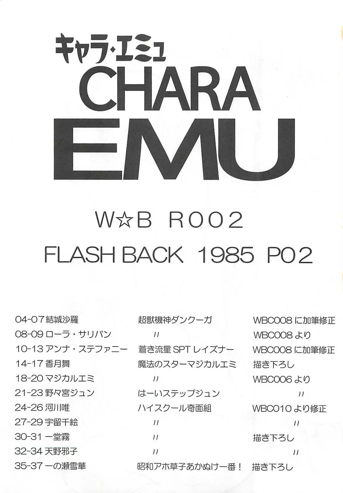 [Dakimakuma, Jingai Makyou Club (WING☆BIRD)] CHARA EMU W☆BR002 FLASH BACK1985 P02 (Various) [だきまくま, 人外魔境倶楽部 (WING☆BIRD)] キャラエミュ W☆BR002 FLASH BACK1985 P02 (よろず)