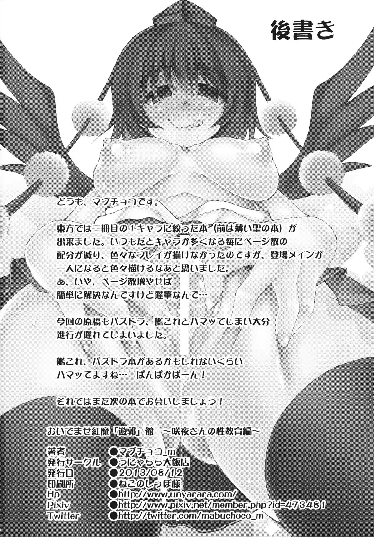 (C84) [Unyarara Daihanten (Mabuchoko_m)] Oidemase Kouma"Yuukaku"kan ~Sakuya-san no Seikyouiku hen~ (Touhou Project) (C84) [うにゃらら大飯店 (マブチョコ_m)] おいでませ紅魔「遊郭」館 ~咲夜さんの性教育編~ (東方Project)
