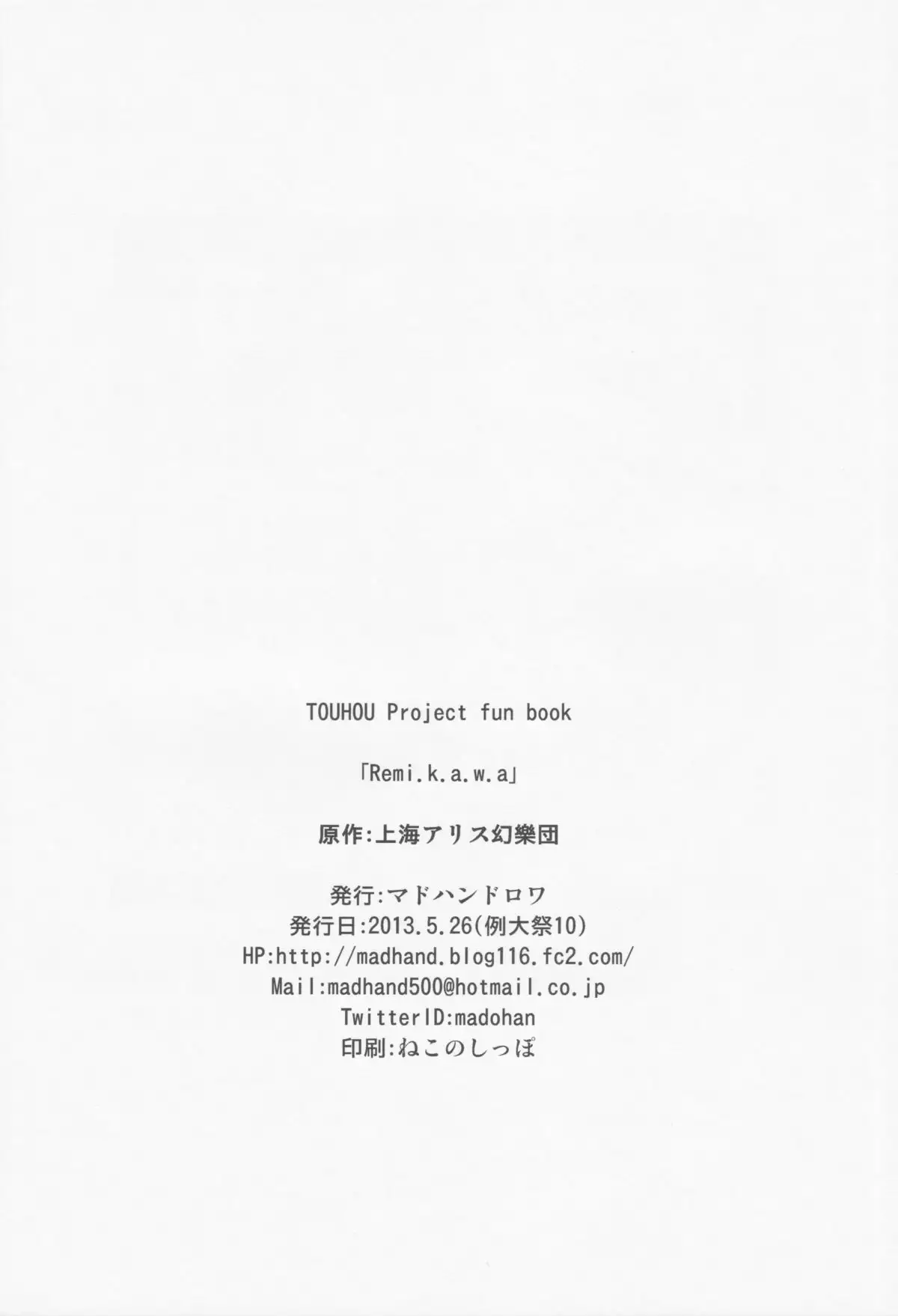 (Reitaisai 10) [Mad Hand Rowa (Madohan)] Remi.k.a.w.a (Touhou Project) (例大祭10) [マドハンドロワ (まどはん)] Remi.k.a.w.a (東方)