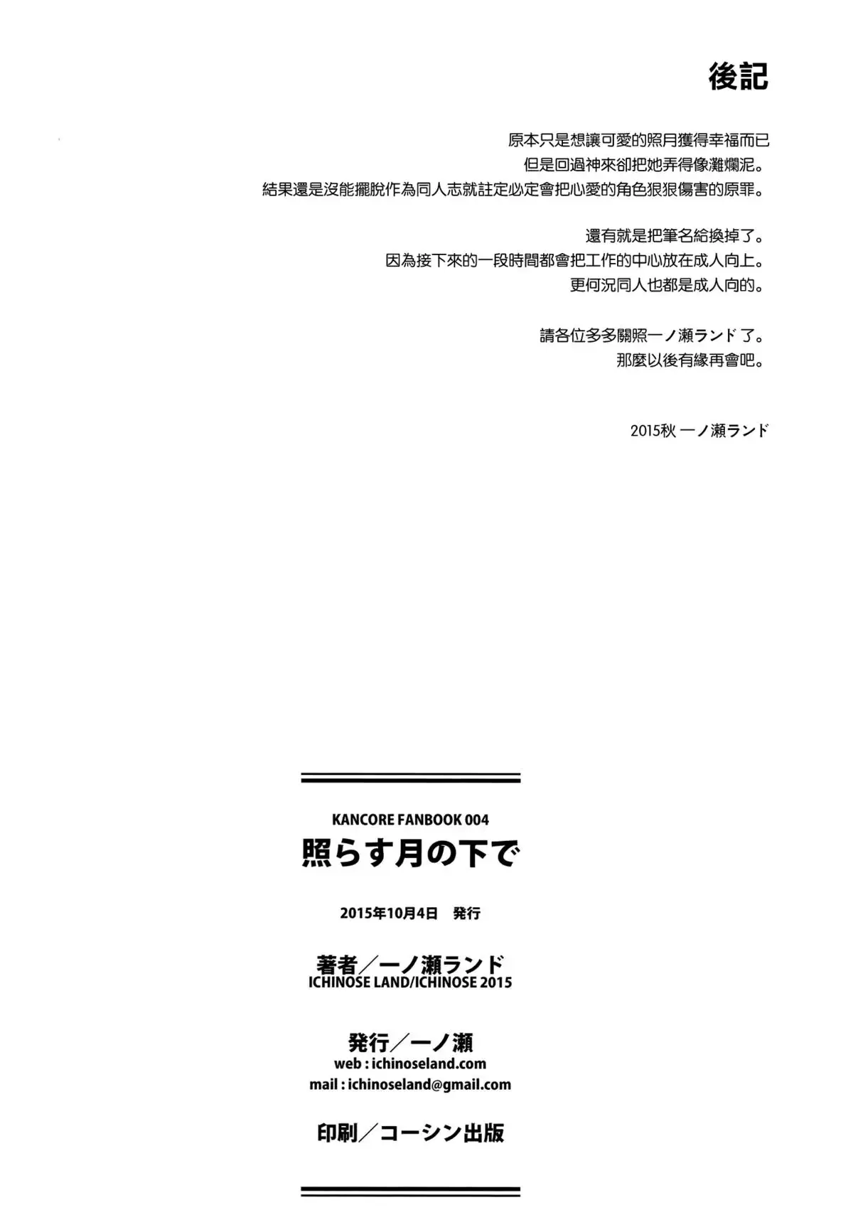 (SC2015 Autumn) [Ichinose (Ichinose Land)] Terasutsuki no Shita de (Kantai Collection -KanColle-) [Chinese] [空気系☆漢化] (サンクリ2015 Autumn) [一ノ瀬 (一ノ瀬ランド)] 照らす月の下で (艦隊これくしょん -艦これ-) [中国翻訳]